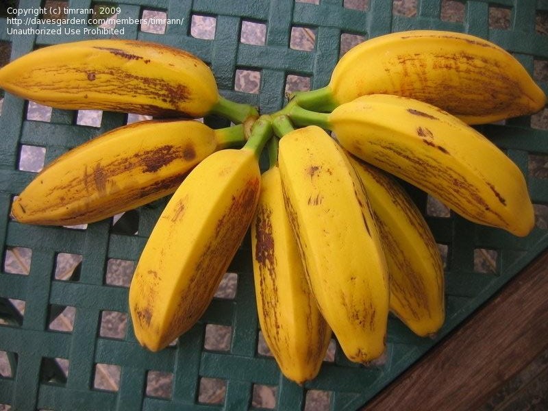 When mature, the fruit has a silky texture with a firm, slightly fibrous core. These bananas are somewhat starchy, but will develop a delicious sweet flavor and soft texture when fully ripened. The fruit can ripen on the plant without splitting.