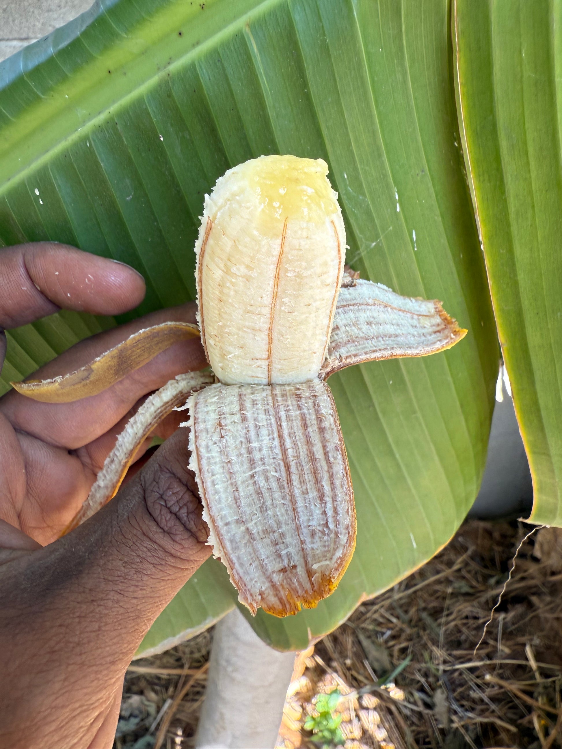 The Brazilian Giant banana is super sweet, creamy, with sour tones. A golden yellow when fully ripe, their texture is slightly firm like that of a ripe plantain, yet still offers a silky mouthfeel. They are superiorly sweet but balanced with a hint of tart green flavors, and are often regarded as one of the best-tasting banana varieties on the market.