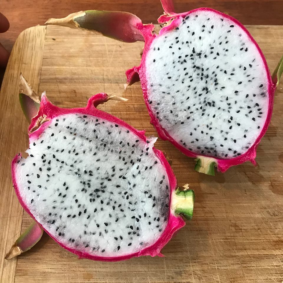 The most commonly grown and known Dragonfruit, this variety is also very easy to grow. Vigorous vines produce copious flowers, with a high percentage of flowers setting fruit via self-pollination. Fruit is very large, 1.5 to 2lbs, and has a lightly sweet, white chocolate flavor with the texture of a watermelon.