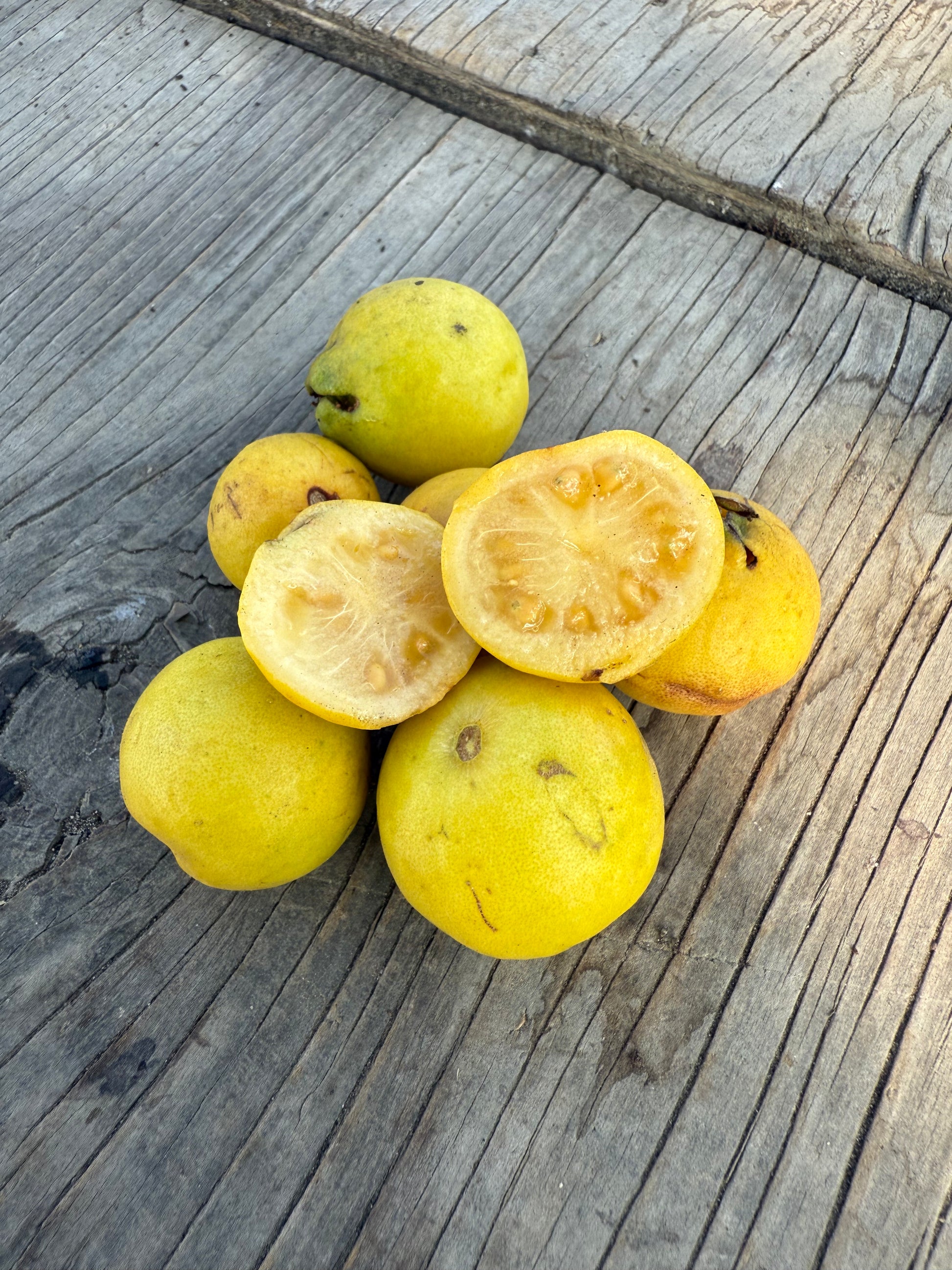 The Lemon Guava is a tasty tropical tree, with sweet, yellow fruit arrives in abundance from summer through fall. Lemon Guavas are mainly eaten raw but can also be cooked. The pulp is often used in fruit salads, smoothies, or in a marinade. Lemon guavas, like most guava varieties, contain a high amount of vitamin A and folate. It also contains vitamins C (even greater amounts are in the skin) and B-complex vitamins as well as minerals like potassium. It can be grown successfully as a potted plant in patio gardens.